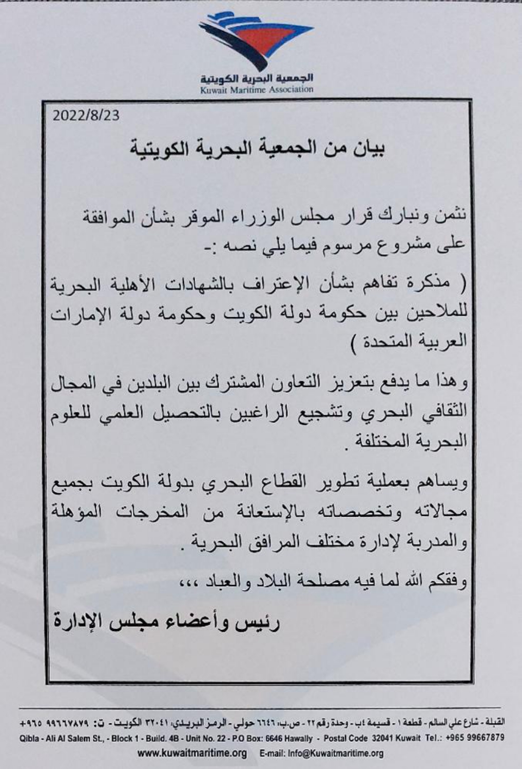قام رئيس وأعضاء مجلس الإدارة بمقابلة نائب الرئيس التنفيذي لشركة ناقلات النفط الكويتية الربان/ يوسف الصقر وقدموا لسيادته درع تذكاري.