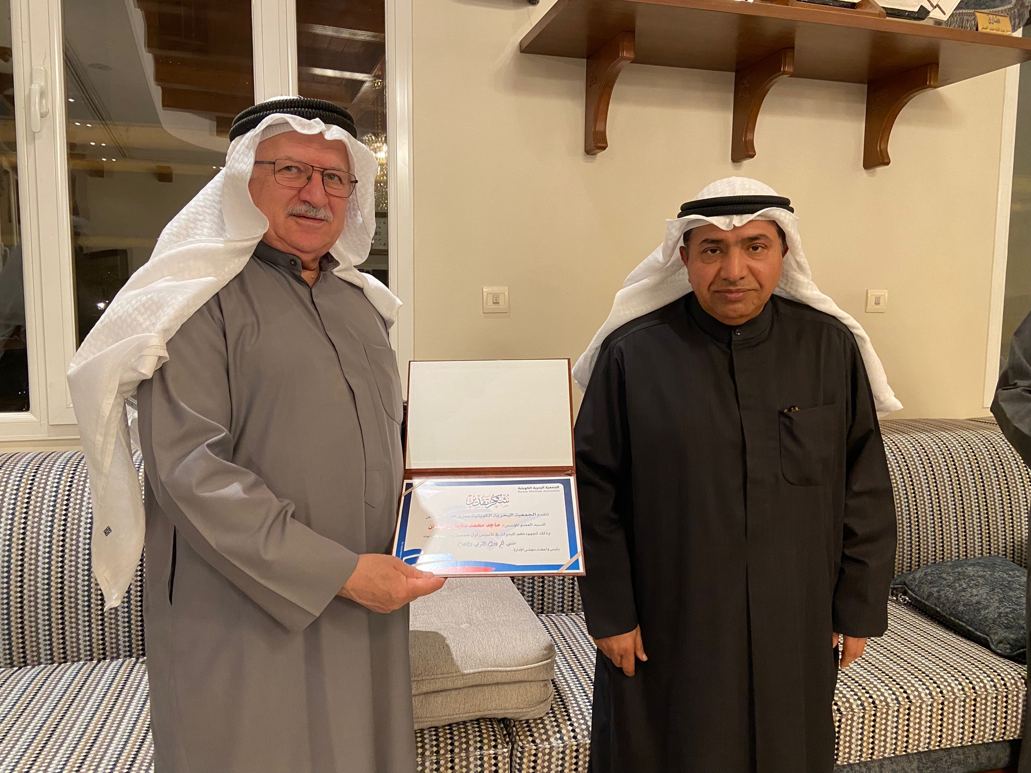 قام رئيس وأعضاء مجلس الإدارة بمقابلة مراقب مجلس الأمة الكويتي النائب الفاضل / أسامة الشاهين بمناسبة جهوده المثمرة بإشهار الجمعية وقدموا له درع تذكاري.